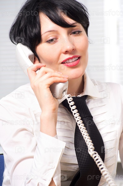 Бизнес-леди говорит по телефону в офисе