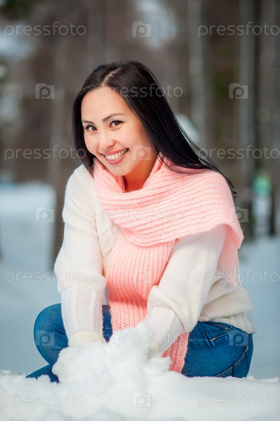 Девушка позирует со снегом
