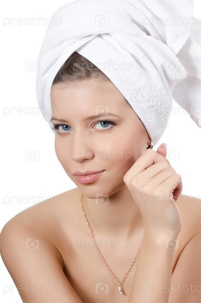 Красивая девушка с полотенцем на волосах