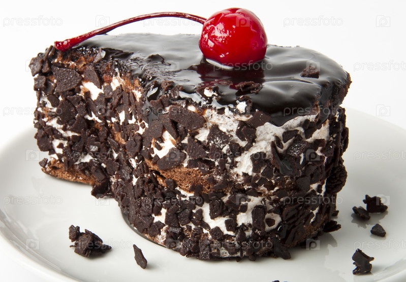 Бисквитное пирожное с шоколадным кремом и вишенкой