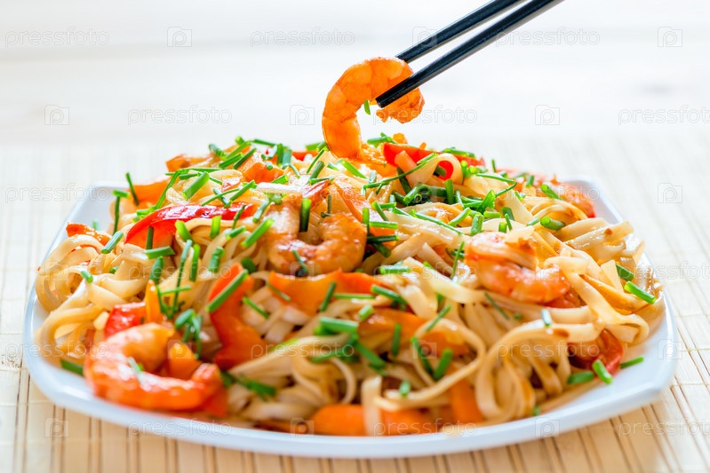 Китайская лапша с креветками