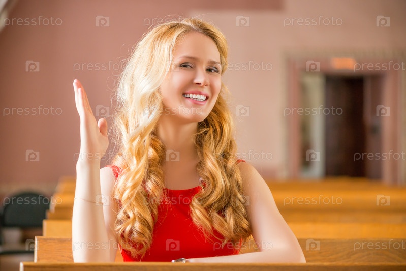 Красивая девушка в красном платье