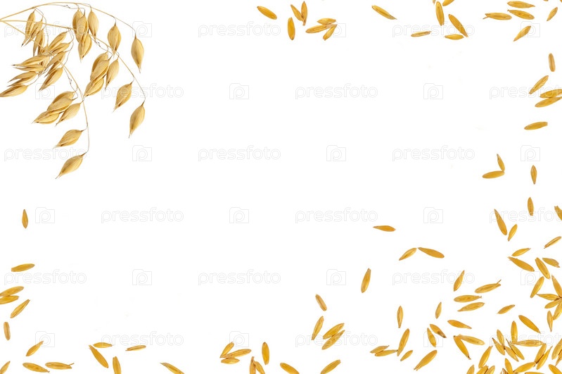 Рамка из зерен овса на белом фоне