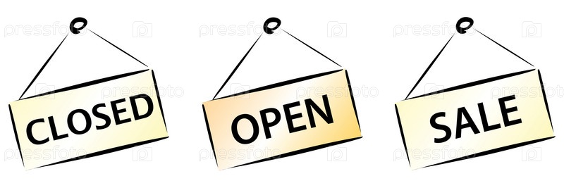 Иллюстрированные таблички с надписями 'closed','open'',sale'