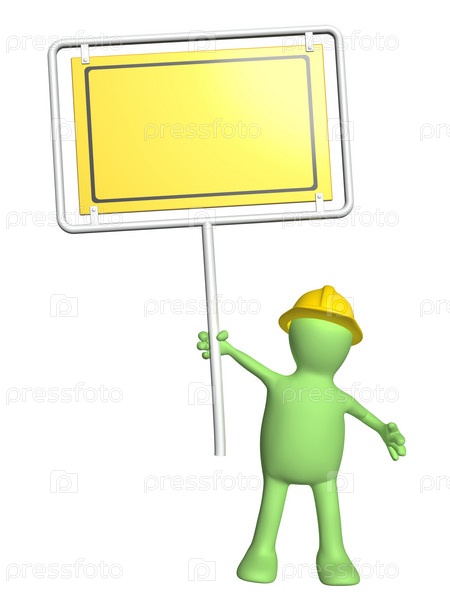 Строитель с табличкой