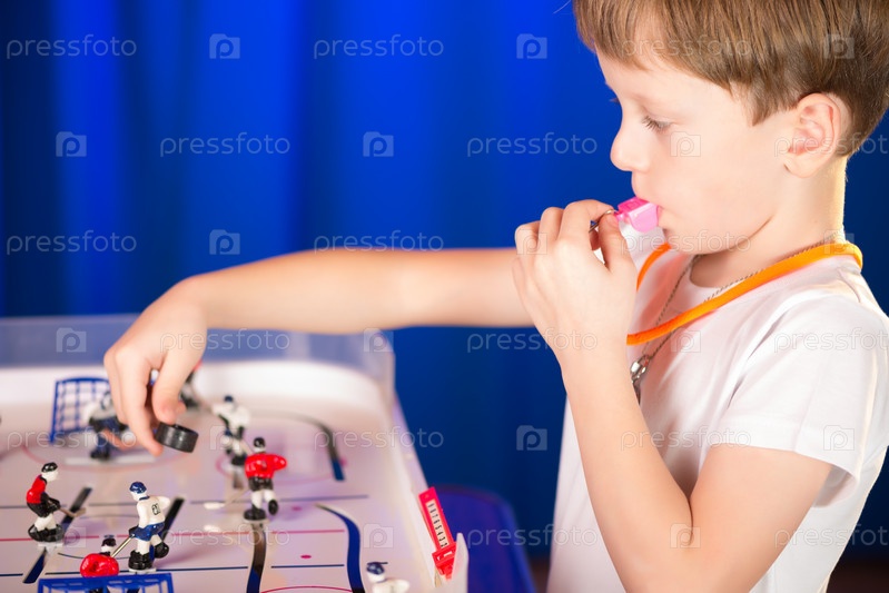 Мальчик, играя настольный хоккей