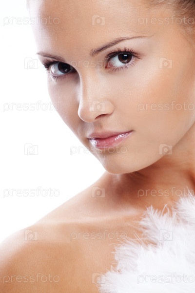 Красивая девушка с чистой здоровой кожей на белом фоне