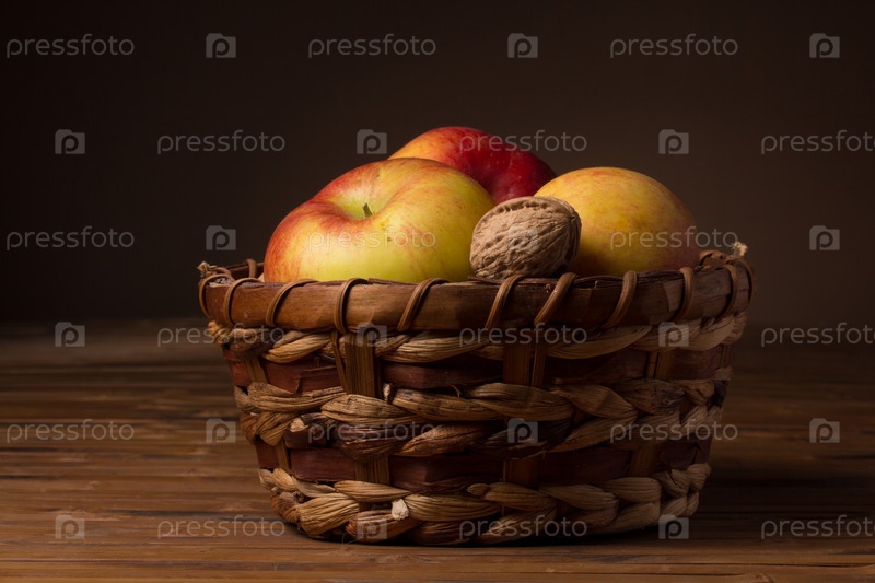 Яблоки в плетеной корзине