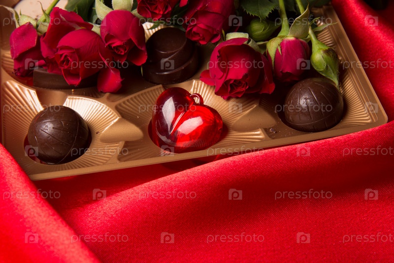 Свежие красные розы и конфеты