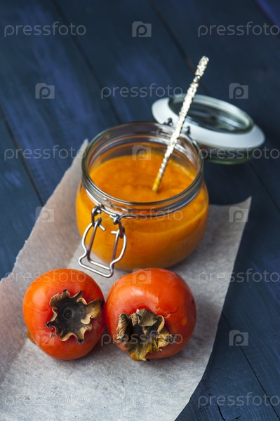 Две хурмы и банка с вареньем