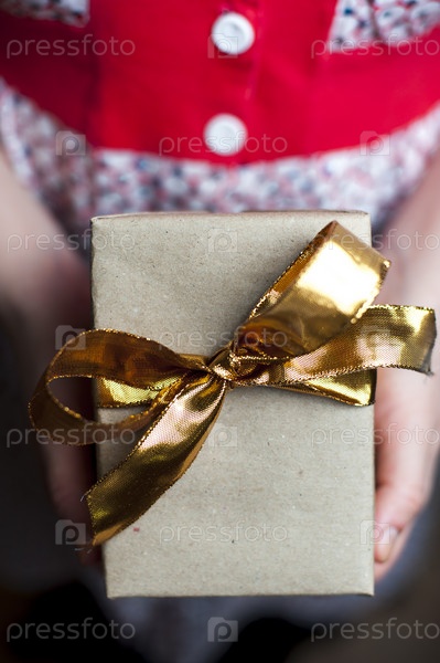 Подарочная коробка с золотой лентой