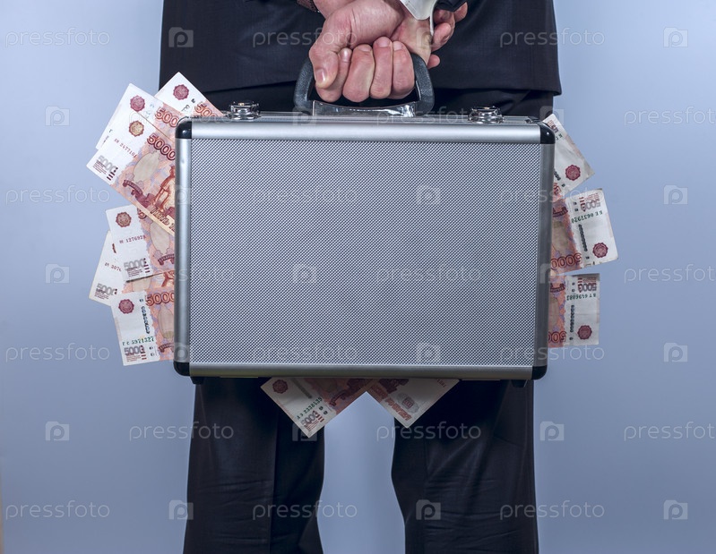 Мужчина держит портфель с денегами