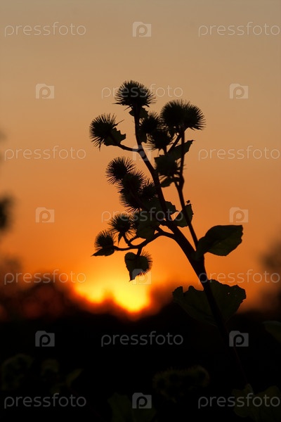 Силуэт растения на закате солнца