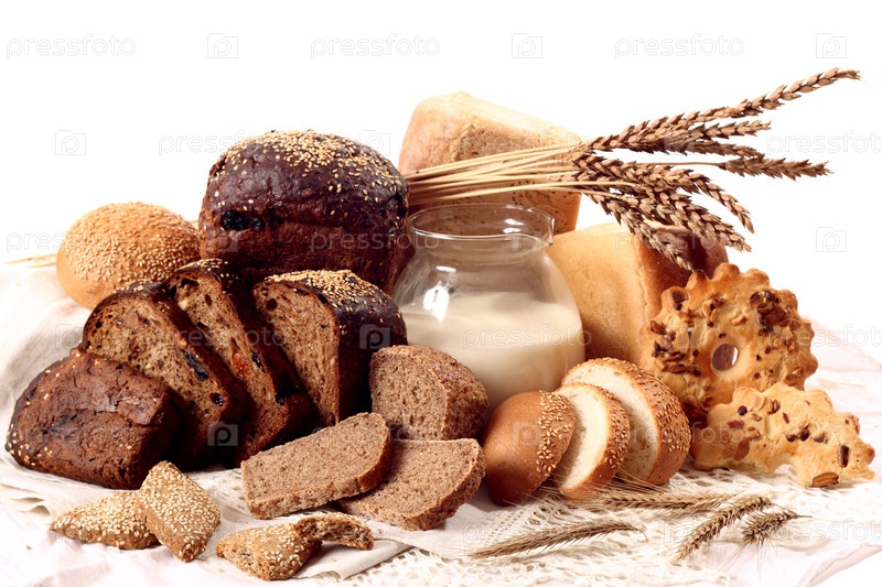 Много разного хлеба на белом фоне