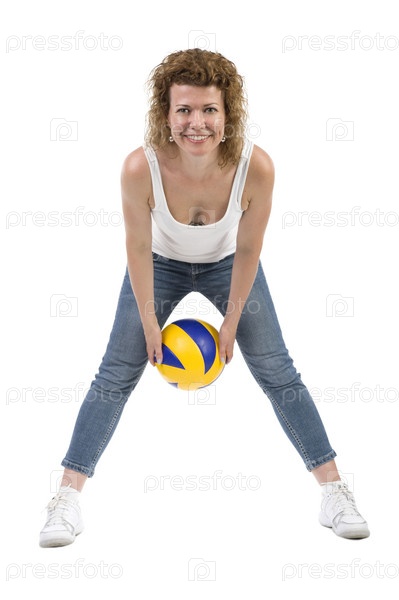Объект на белом - спортивная женщина с мячом