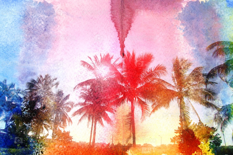 Акварель ретро пальмы