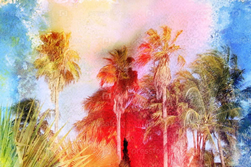 Акварель ретро пальмы