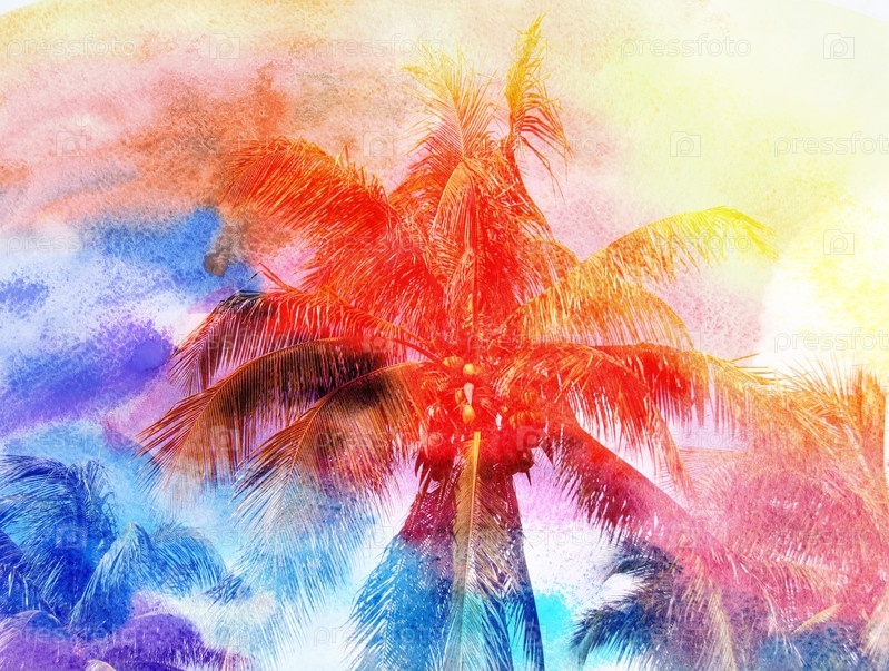 Акварель ретро пальмы