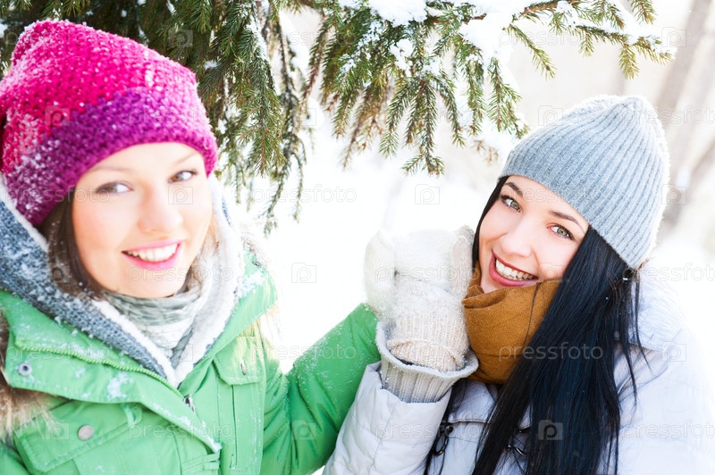 Две девушки на открытом воздухе зимой