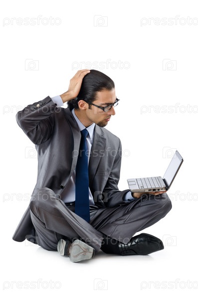 Бизнесмен работает на ноутбуке
