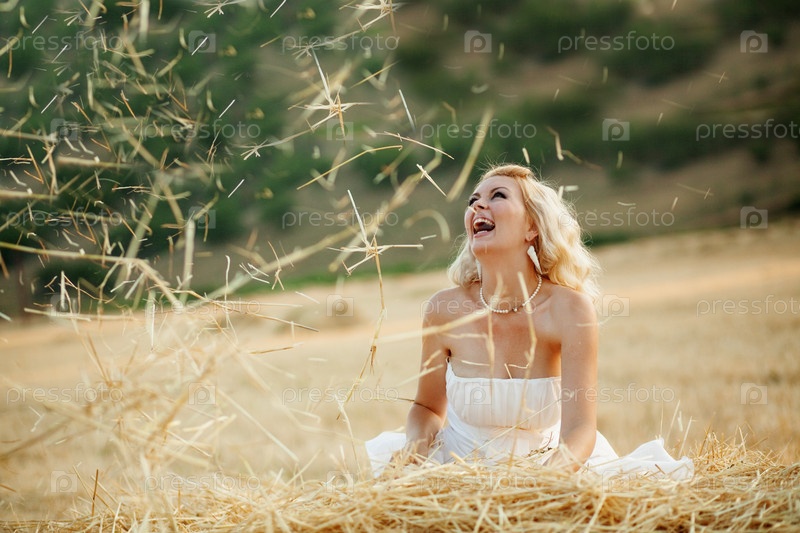 Счастливая невеста в поле