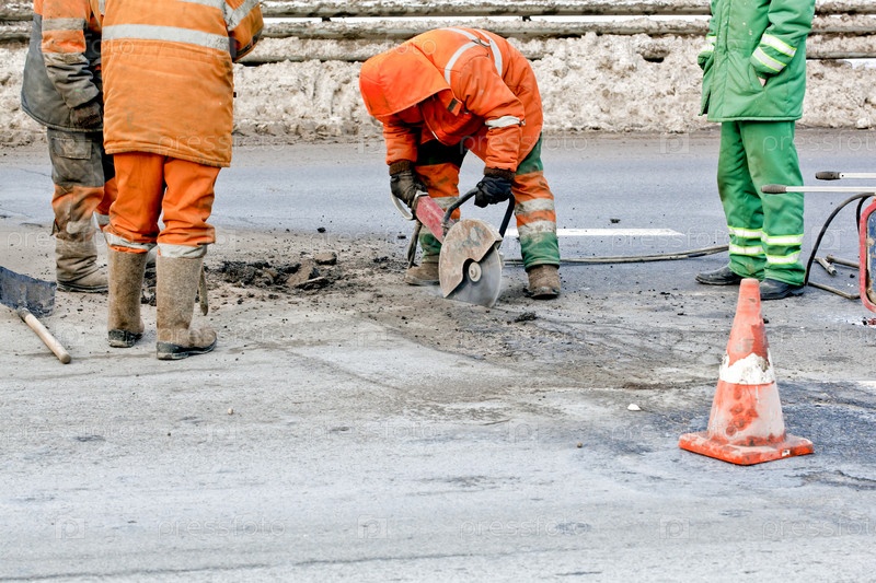 Рабочие ведут дорожные работы