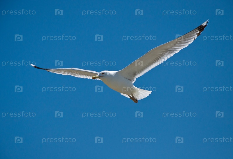 Чайка на фоне синего неба