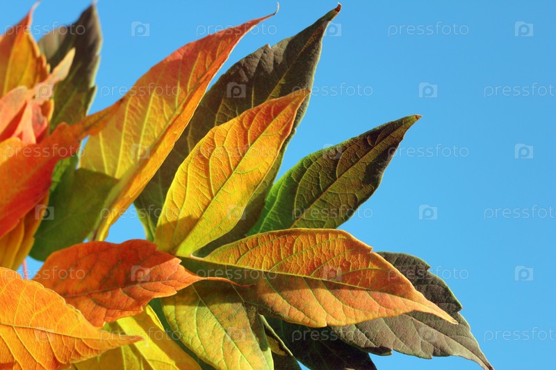 Осенние кленовые листья на фоне голубого неба