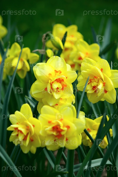 Желтые нарциссы среди зеленой травы