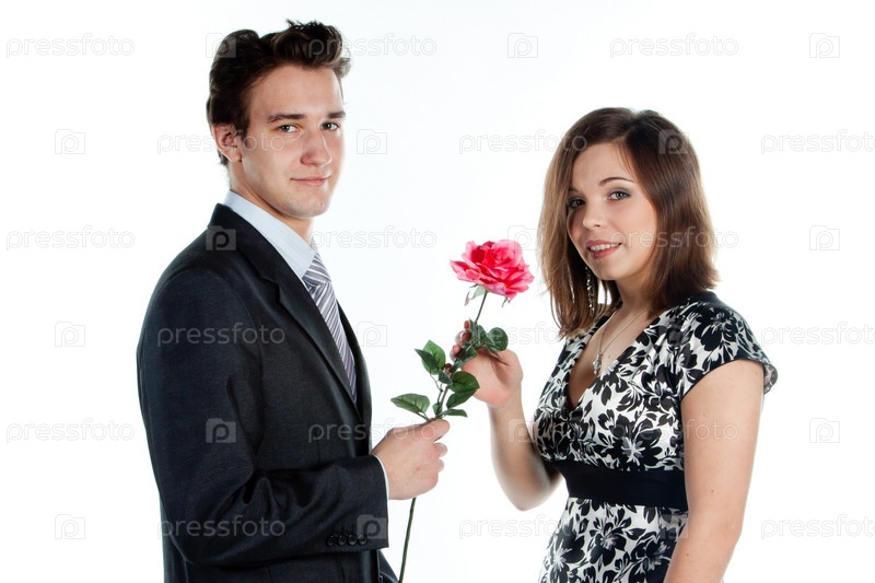 Парень дарит девушке розу
