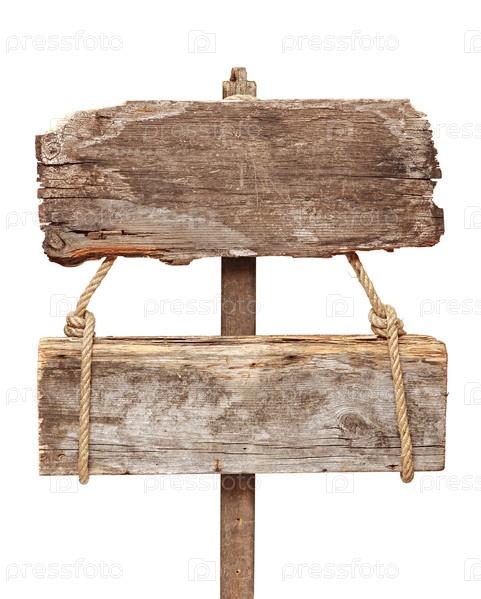 Старый деревянный указатель на белом фоне