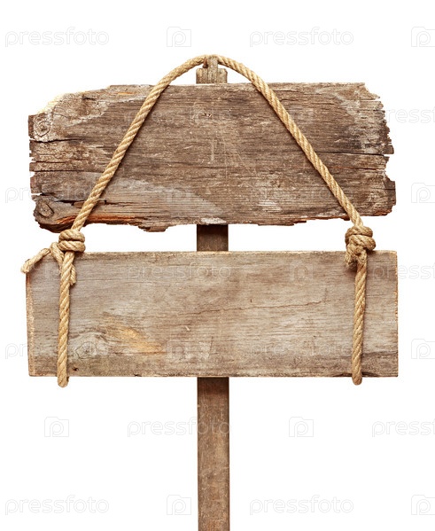 Старый деревянный указатель на белом фоне