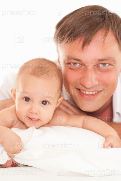 Папа и его дочь на белом