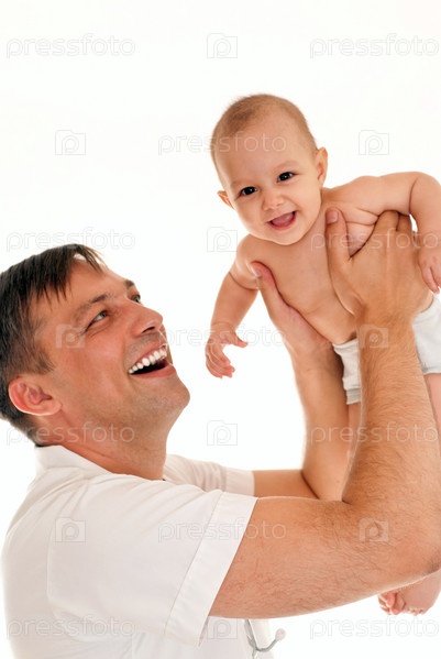 Папа и его дочь на белом