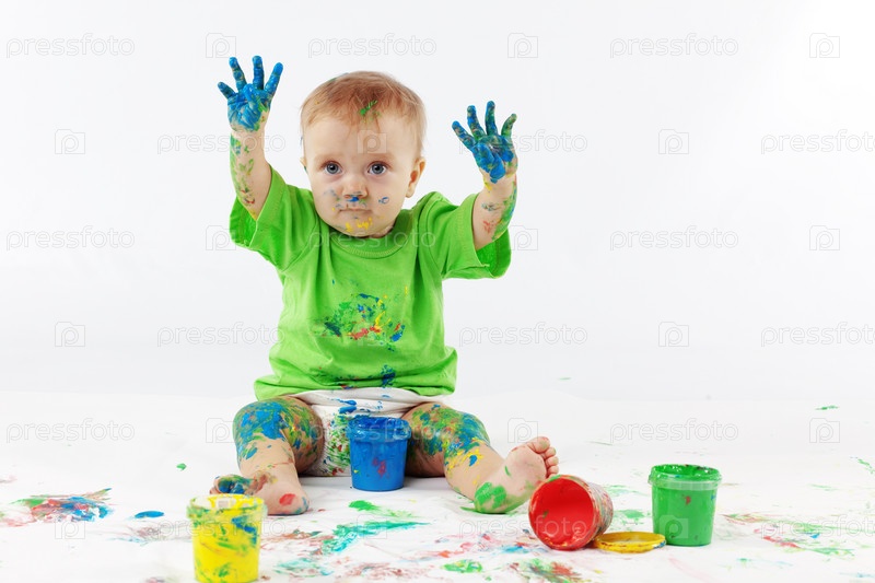 Забавный малыш, испачканный красками