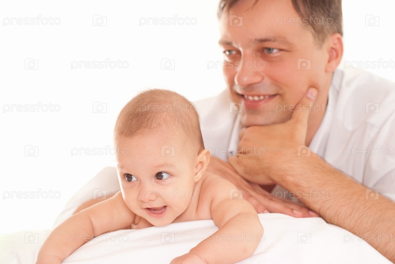Папа и его дочь на белом