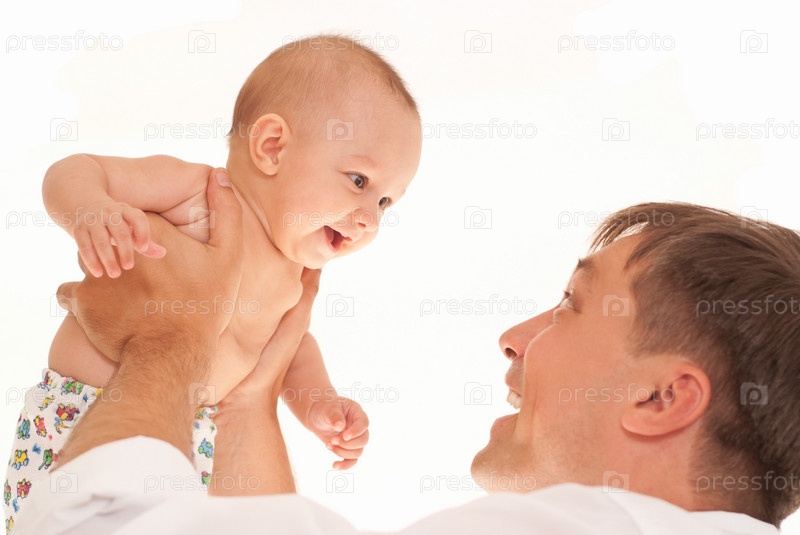 Папа и его дочь на белом