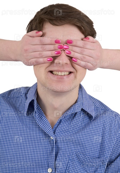 Мужчина с закрытыми глазами женские руки на белом