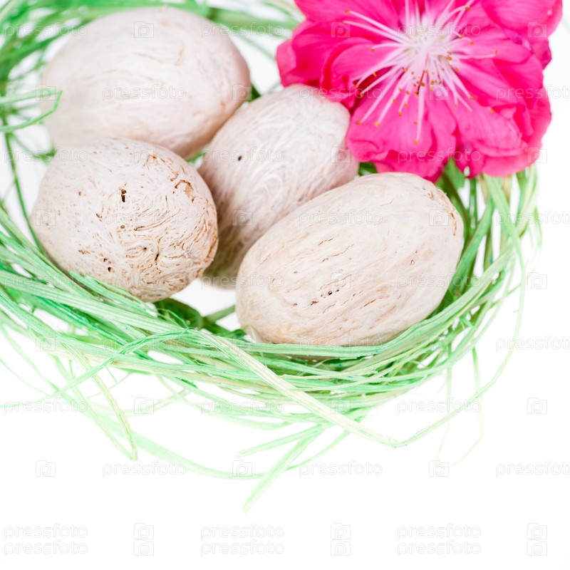 Зеленое гнездо с яйцами