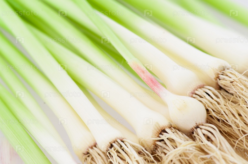 Побеги зеленого чеснока с корнями