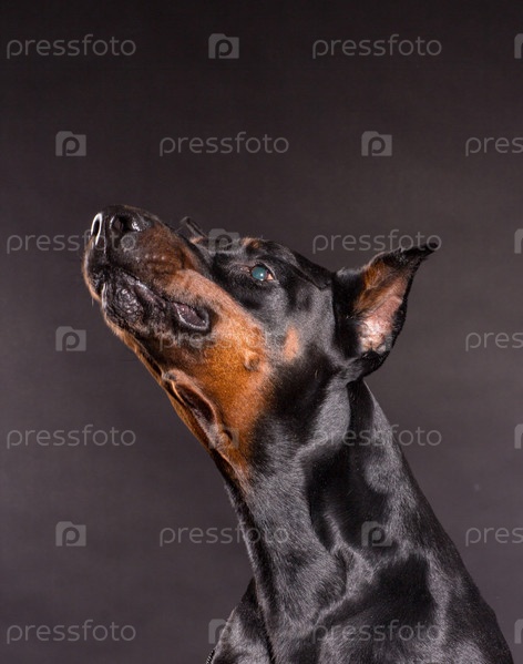 Доберман пинчер на черном фоне