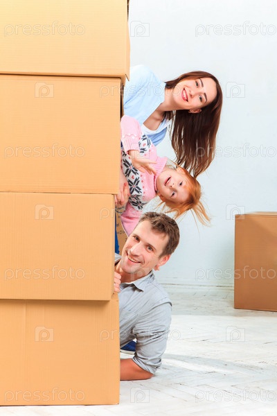 Счастливая семья во время переезда