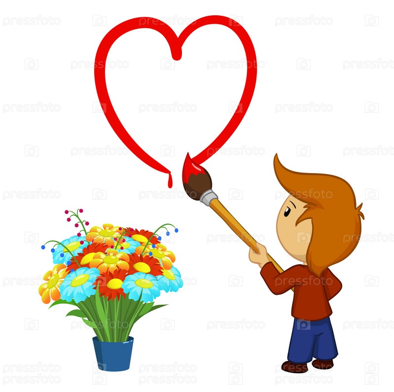Мальчик рисует красное сердце, изолировано на белом фоне