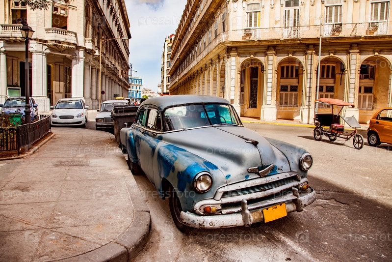 Старый винтажный автомобиль на улицах Гаваны на острове Куба
