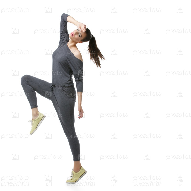 Красивая девушка в сером комбинезоне