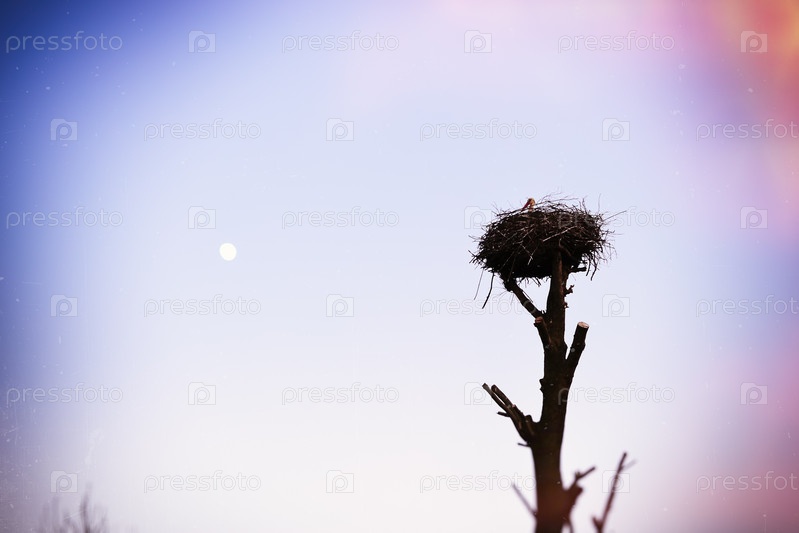 Аист в гнезде на вершине дерева