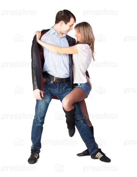 Пара танцует на белом фоне