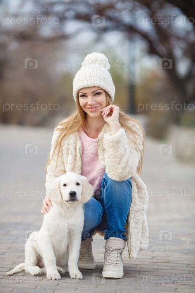 Молодая женщина и ее щенок