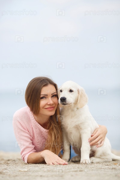 Молодая женщина и ее щенок
