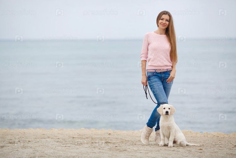 Молодая женщина и ее щенок